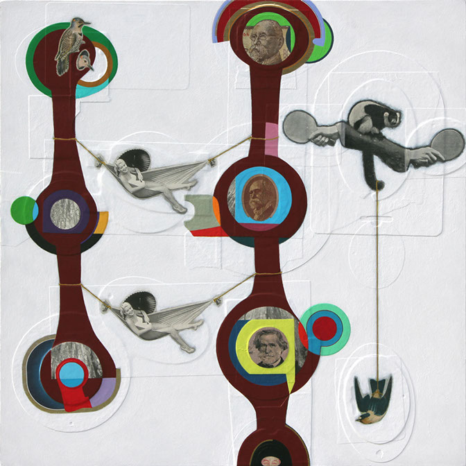 2012, acrylic & collage on board, framed: 52 x 52 cm